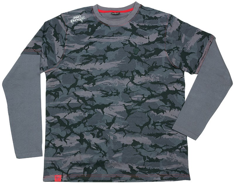 Agresivní Camo vzor na těle a dlouhé šedé rukávy