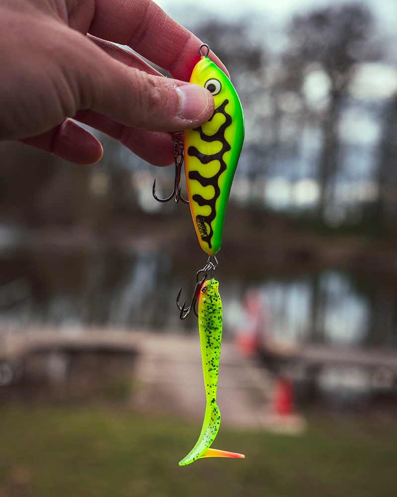 Tvar vývrtky a spolehlivý klip poskytují maximální flexibilitu, perfektní například pro spojení měkkých nástrah s woblery například: Fox Rage Pro Grub připojený k velkému wobleru.