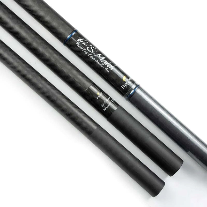 Je vyrobena ze stejného japonského karbonu jako řada prutů Hi-S, což znamená, že nekompromisní kvalita zaručuje extrémně pevnou a zároveň lehkou rukojeť, která se mnohem lépe používá. Je vybavená nerezovými závity na sekcích č. 1 a 2, takže rukojeť lze použít ve dvou různých délkách. Druhá část i horní část mají závity, které umožňují flexibilní použití jako dvoudílná rukojeť nebo třídílná delší rukojeť.