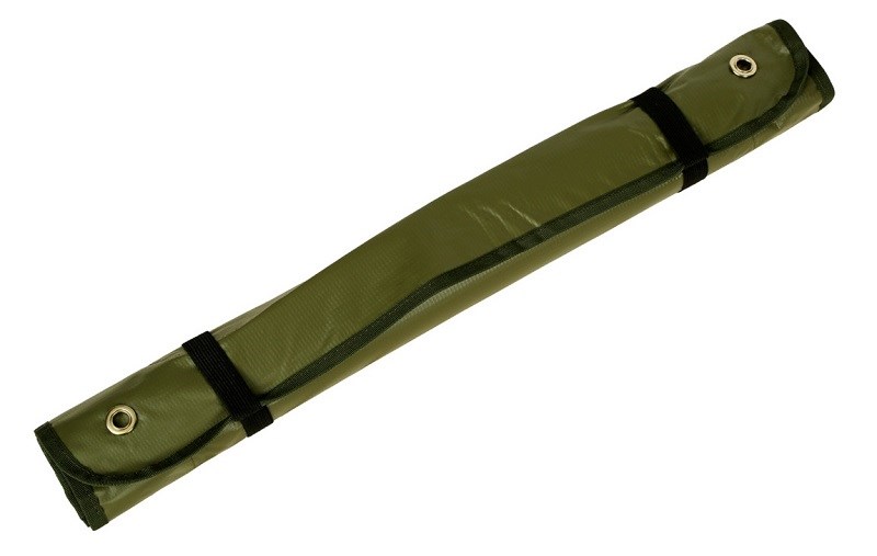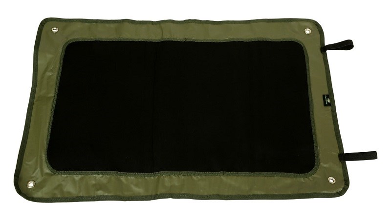 Čtyři očka pro ukotvení k zemi a dva elastické pásky, které jsou určeny pro zajištění při složení. Ve spodní části omyvatelná PVC vrstva a navrchu neopren.