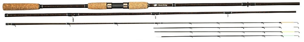 Pruty jsou vyrobeny z High Modul uhlíku zpevněného kevralovým ovinem s úžasnou parabolickou akcí. Osazení kvalitními a zpevněnými dvou-ramennými SIC očky pro přesné a daleké hody. Prvotřídní technologie s použitím nejkvalitnějších materiálů a samotná konstrukce těchto kvalitních feederových prutů, Vám umožní zaznamenat i ty nejcitlivější záběry! Pruty jsou dodávány se 4 špičkami (3x grafitová a 1x sklolaminátová) různých tvrdostí. Dělená rukojeť je vyrobena z jakostního drceného korku, který je velmi příjemný na dotek.