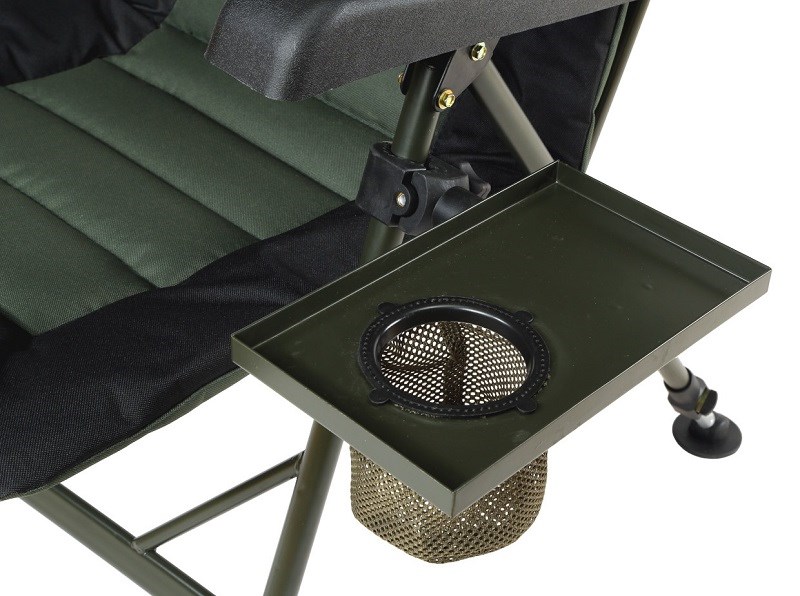 Praktický stolek k jakémukoliv lehátku a sedačce od Giants Fishing Vhodný pro odkládání často používaných věcí při rybaření. Stolek je vyroben z hliníkové slitiny a lze jej díky lehce ovladatelnému upínáku snadno přidělat k lehátku či sedačce. Dále je v něm otvor se síťkou pro držení láhve. Rozměry: 25x15cm