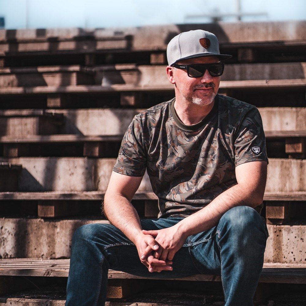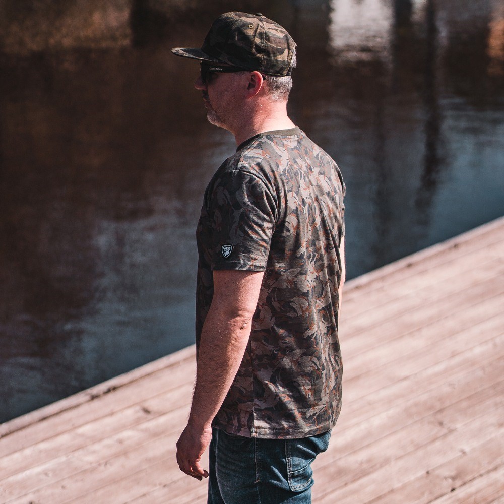 Kvalitní tričko v maskáčovém vzoru s decentním 3D logem značky na rameni. Vyrobeno v České republice.