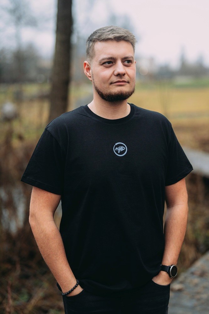 Kvalitní pánské tričko v černé barvě s naším originálním designem kapří hlavy na zádech.