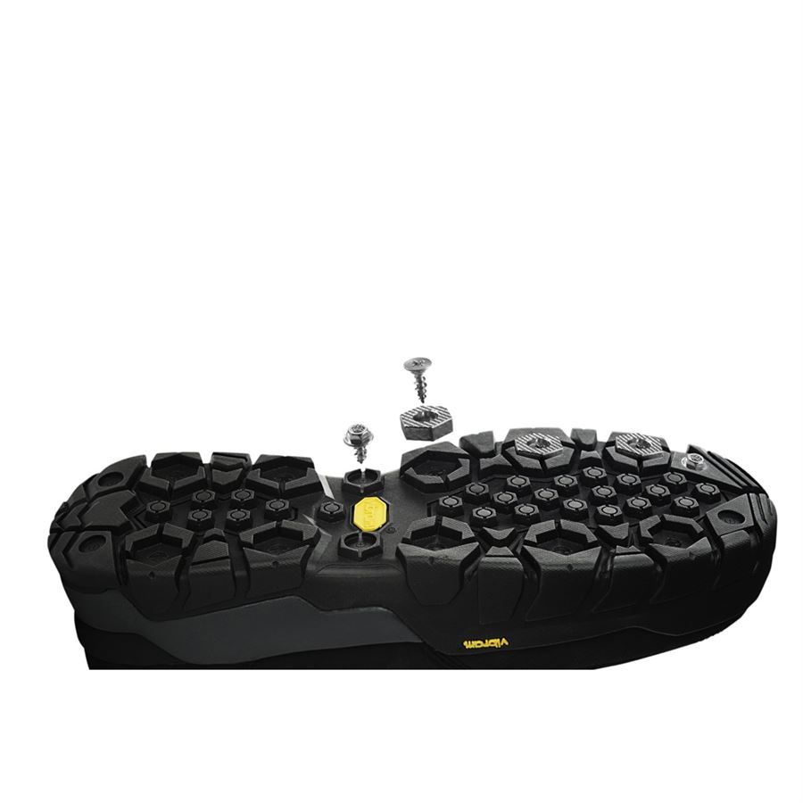 Díky exkluzivní podrážce Vibram® Idrogrip™ a systému HEXAGRIP™ s hliníkovými kolíky nabízí vynikající přilnavost na mokrých a nerovných terénech.