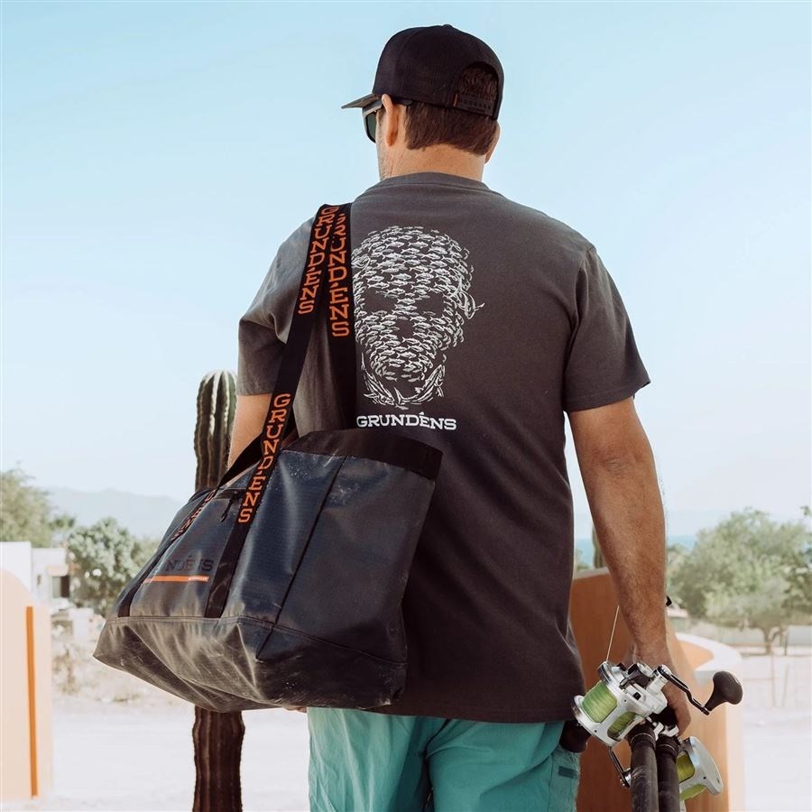 Grundéns Bait Ball je vyrobené ze směsi bavlny a polyesteru, díky tomu poskytuje maximální komfort při nošení. Design trička zdobí jedinečná grafika od Grundéns, na zádech zobrazuje lovící tuňáky s hejnem rybiček ve tvaru lebky. Toto tričko je vyrobeno s důrazem na kvalitu, aby vydrželo i náročné podmínky a přitom zůstalo měkké a příjemné na dotek.
