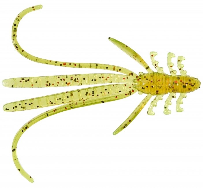 Díky specifickému provedení s malým tělíčkem a dlouhými nožkami z ultra jemného, ale přesto pevného a odolného materiálu, se nymfa ve vodě krásně vlní i při pomalém pohybu. Postranní nožky dodávají nástraze jedinečnou vibraci, která ji odlišuje od podobných nástrah na trhu. Vhodná jak na klasické použití s jigovou hlavičkou nebo čeburaškou, tak i na dropshot. Napuštěno aromatem pro ještě větší dráždivost.