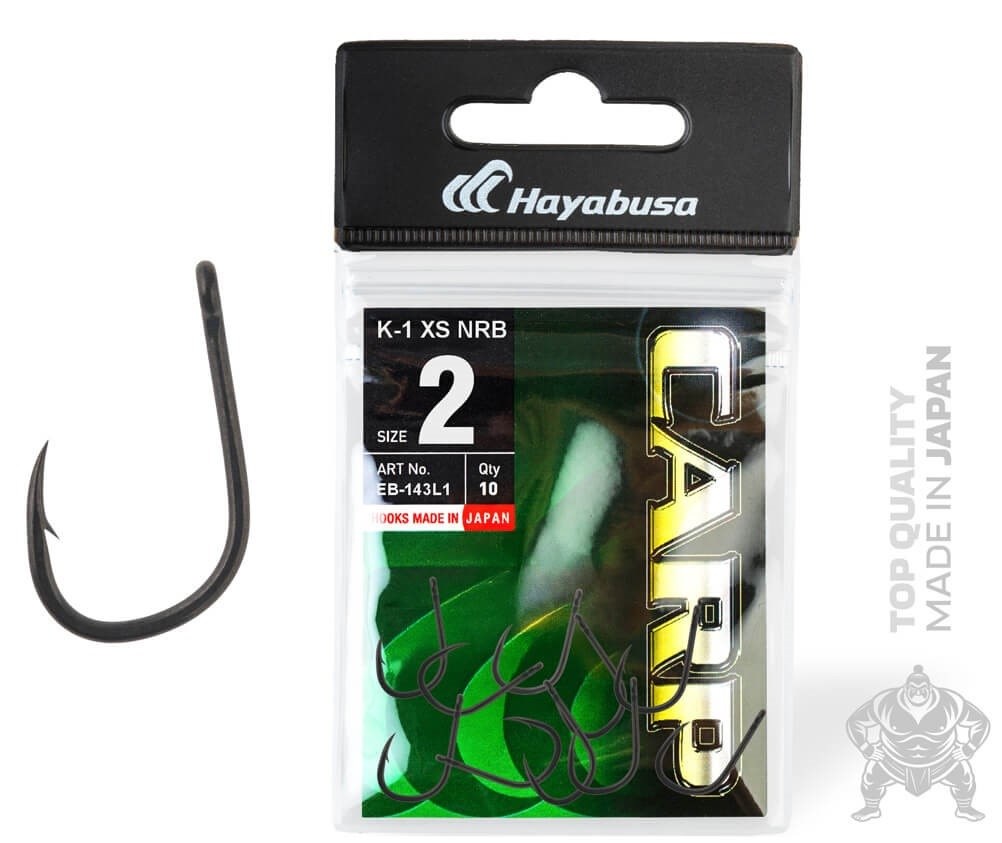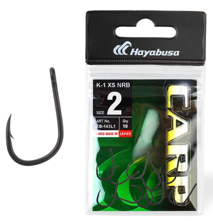 Háček Hayabusa K-1 XS s širokým obloukem a se zesíleným drátem – extrémně odolný háček pro těžké podmínky a lov velkých kaprů. Zvětšuje dosah při záběru a zajišťuje jisté zaseknutí i v hustší vegetaci nebo ztížených podmínkách. Skvěle se hodí pro lov kaprů na boilies a pelety, ale i pro použití s většími měkkými nástrahami. Jsou vhodné jak pro klasické kaprové montáže, tak i pro moderní prezentace nástrah.