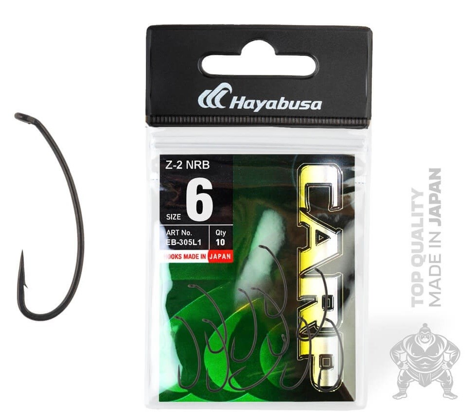 Haybusa Z-2, háček legendárního tvaru, který má na světě velké množství zastánců. Při správném navázání je tento háček nekompromisní a velice úspěšnou zbraní, která vždy skončí pevně zaseknuta ve spodním pysku kapří tlamy. Jsou vhodné jak pro klasické kaprové montáže, tak i pro moderní prezentace nástrah.