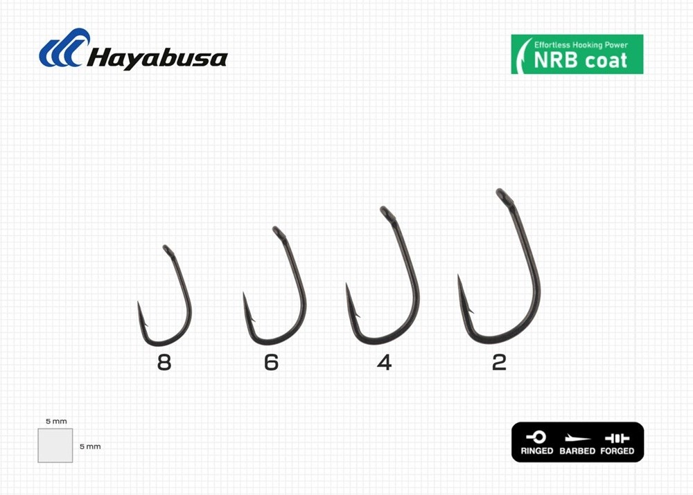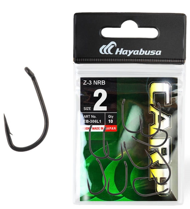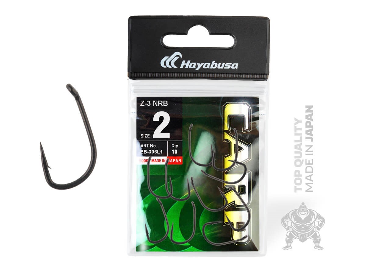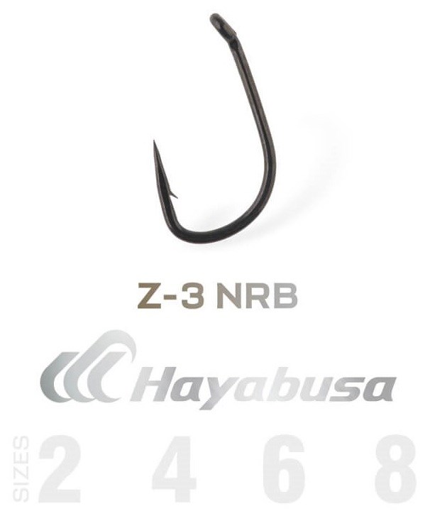 Haybusa Z-3, široké ramínko a mírný náklon očka háčku zajišťují, že háček vždy zasekne. Silný a tvrdý drát zabraňuje tomu, aby i malé háčky při záběru trofejního kapra nebo amura selhaly. Jsou vhodné jak pro klasické kaprové montáže, tak i pro moderní prezentace nástrah.