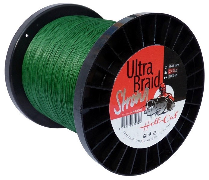 Splétaná šňůra od značky Hell-Cat Ultra Braid Strong, je vyrobena v neuvěřitelně vysoké kvalitě Při výrobě byla použita ta nejkvalitnější vlákna, která jsou splétána tak aby šnůra měla kulatý profil. Velký důraz byl kladen na povrchovou úpravu a odolnost vůči oděru, která je až třikrát větší oproti ostatním splétaným šňůrám v této kategorii. Při vývoji a testování tohoto produktu, byl nastaven jasný cíl, vytvořit ultra pevnou a odolnou šňůru, která je určená pro lov největších predátorů, jako je například sumec, štika a pod. Díky těmto vlastnostem, je tato šnůra též vhodná pro lov velkých ryb na moři a je odolná vůči slané vodě a UV záření. Barva: zelená Návin: 1000m