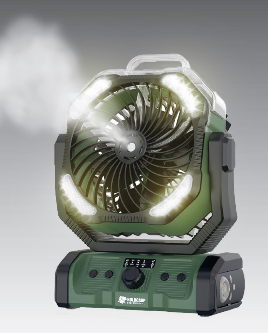 Holdcarp Rechargeable DoubleMotor WaterSpray Fan – ventilátor s vodní mlhou a obří baterií!