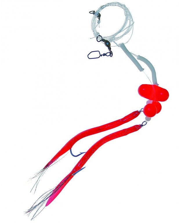 Návazec obsahuje, zvuková chrastítka, pevný obratlík a karabinu k rychlé výměně spodního závaží, nebo pilkeru.