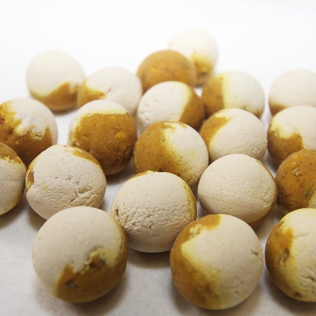 Její polovinu tvoří těsto z bílé V-Popky a druhou polovinu představuje Carptrack těžký mix příslušné řady, což vytváří velice chutnou a atraktivní kombinaci. Díky tomuto vyvážení ji dokáže kapr lépe nasát. Nastražené pod háčkem vydrží mnohem déle než nástraha vytvořena z dvou půlených různě vzplývavých kuliček. Dalším velmi zásadním aspektem je dokonalé vyvážení návnady. Dosažené úlovky na tuto nástrahu napříč Evropou mluví za vše!!!!