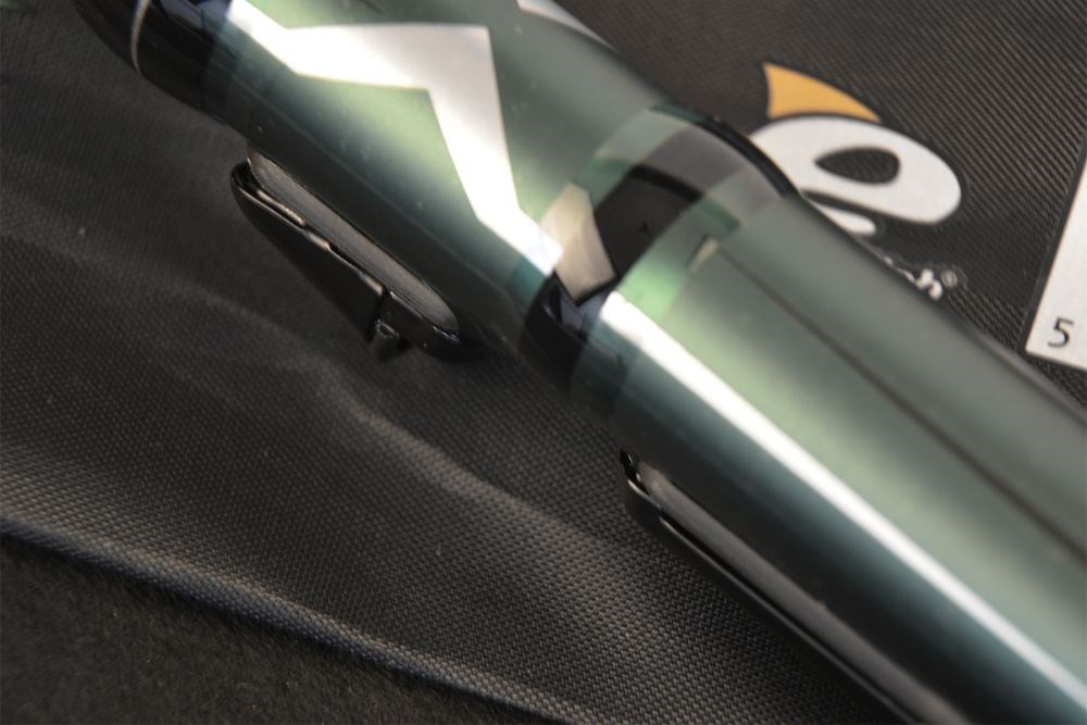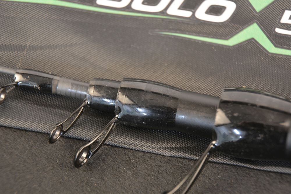 Matná tmavě zelená barva s bílými nápisy, stříbrnými a černými vzory! Černou nití bylo vyztuženo i sedlo na naviják. Vzdálenost od spodní části sedla navijáku ke konci prutu je 41 cm, takže dokonale padne na předloktí rybáře průměrné výšky. Nevyčuhuje příliš, aby překážel v používání, a není příliš krátký, aby se s ním nepohodlně manipulovalo. Když se posuneme dál, na prutu vidíme, že je vybaven řadou skutečně odolných oček, které díky speciálnímu designu brání zamotání vlasce! Je také lehký a příjemný na pohled. SIC vložky určitě nepoškodí ani ty nejtenčí monofilové vlasce!