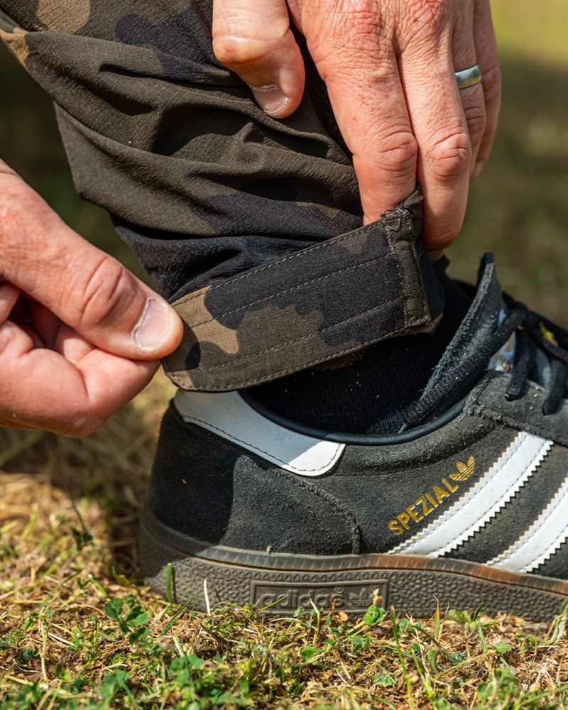 Kalhoty jsou ideální na teplejší měsíce – odvádějí pot od pokožky a tkanina je utkána tak, aby chránila před štípanci od komárů. Zapínání je na knoflík a zip, po stranách jsou spony na nastavení velikosti a nechybí ani poutka na pásek. Kapes je dostatek – celkem 9: dvě na každé straně (jedna na zip a druhá otevřená), velké kapsy na suchý zip na stehnech i vzadu a vnitřní kapsy na drobnosti. Dostupné v olivově zelené (S až XXXL) a dark kamo (S až 4XL).