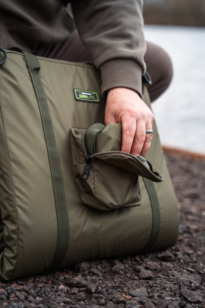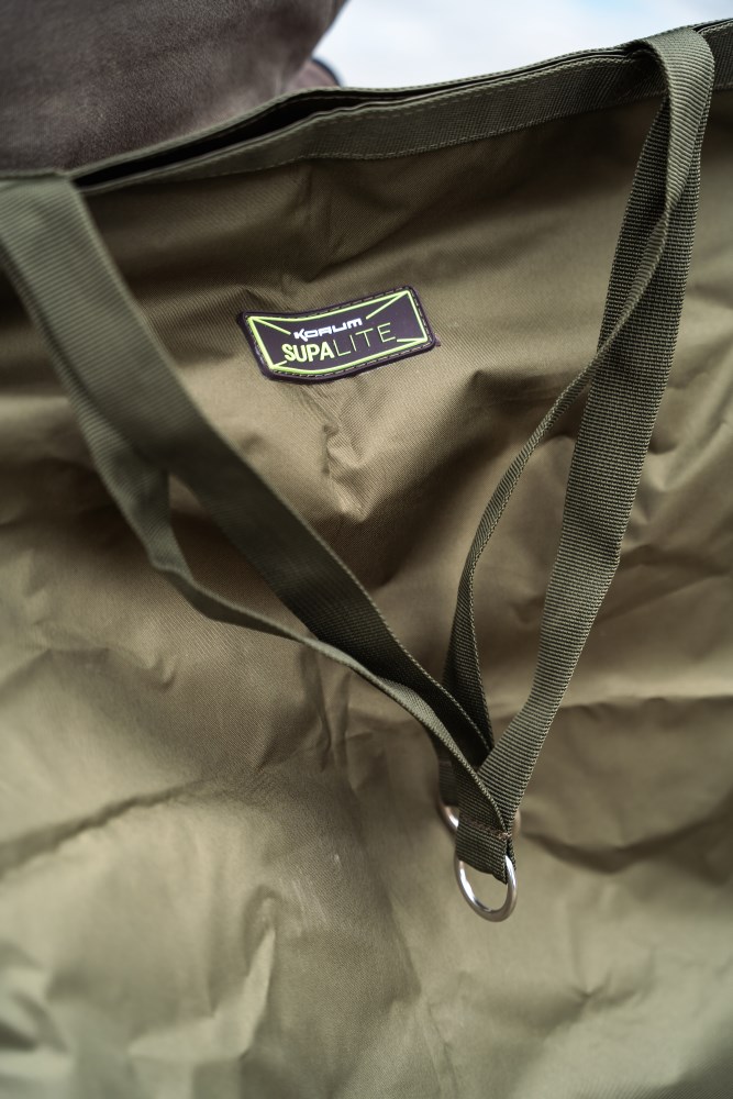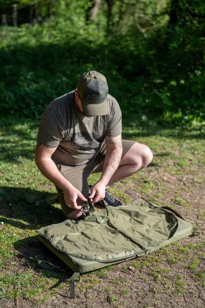 Na zadní straně podložky se nachází vážicí váha pro trofejní úlovky, uložená úhledně v malé kapsičce. Tato kapsa je dimenzována tak, aby pojala také váhy Korum. Podložka se bezpečně sepne dohromady a je vybavena integrovaným madlem pro snadné přenášení.