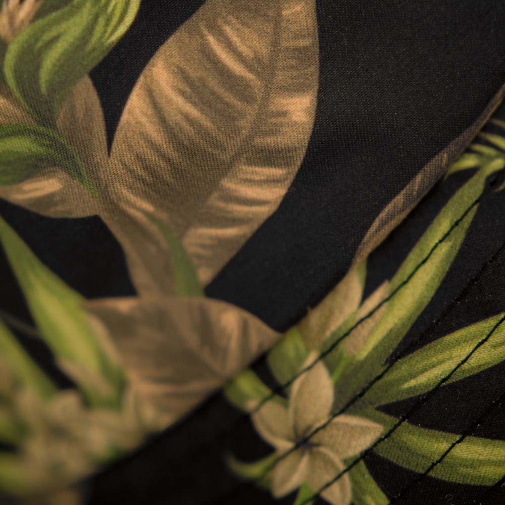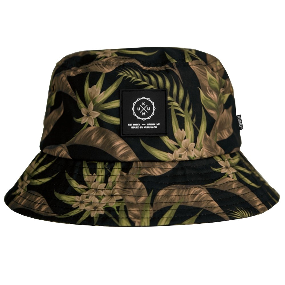 Celobarvený klobouk s květinovým potiskem. Na přední straně PVC pryžový štítek s logem KUMU, na boční straně tkaný štítek s nápisem. Jednotná velikost. Materiál 100% polyester.