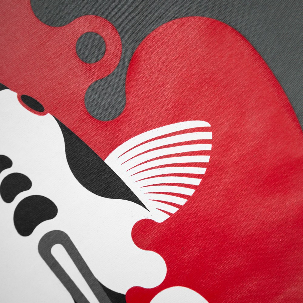 Jedna z našich nejoblíbenějších linií, nově navržená v krásné břidlicově šedé barvě. Naše grafika vycházejícího slunce je silně inspirována kulturou a vírou Dálného východu. Během tvůrčího procesu jsme studovali použití červené barvy v japonském umění a její význam. To v kombinaci s láskou ke kaprům Koi a jejich znakům vedlo k tomu, co se stalo klasikou všech dob. Tříbarevný sítotisk na super měkké 150g organické látce s tkanými bočním štítkem.