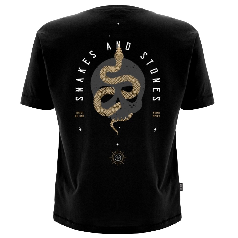 Design „Snakes and Stones“ je inspirovaný frází „klacky a kameny mi mohou zpřelámat kosti, ale jména mě nikdy nezraní.“ Stephen May ve své práci odkazuje znovu především na sociální sítě, kde se denně setkáváme s nevraživostí a pomluvami, které si mnozí následně berou k srdci. Krédem KUMU a myšlenkou tohoho motivu je, že „můžete o nás říkat, co se vám líbí, ale vaše slova nás nikdy nezraní.“ V zásadě se to týká kohokoli, kdo o nás mluví špatně, ale my si s ním nebudeme lámat hlavu, protože za nás mluví především naše činy a naše práce.