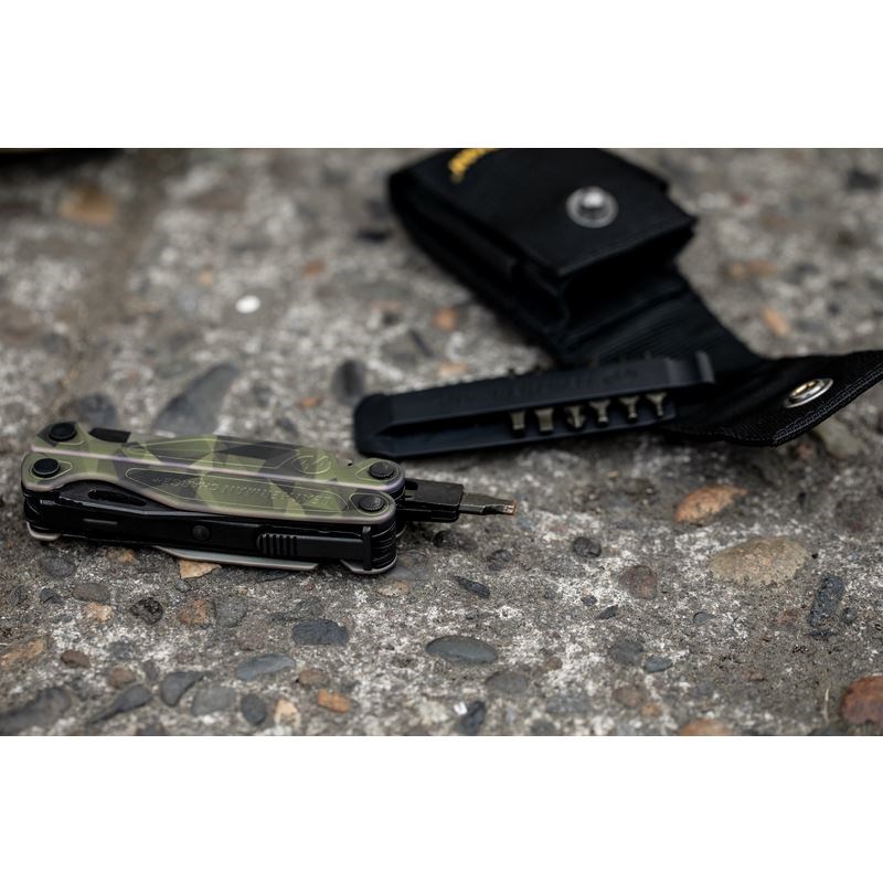 Balení obsahuje: multitool,nylonové střední pouzdro se 4 kapsami, odnímatelnou kapesní sponu, kroužek na karabinu, sadu přídavných bitů: Křížový bit PZ1 a PZ2, imbus 1,5 mm, 2mm, 2,5 mm, 3 mm, 4 mm, 5 mm, torx 10, 15, 20, 25, plochý bit 1/8 a 3/32, samolepku 100% originál, návod