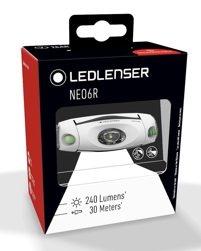 Obsah balení: čelovka NEO 6R, dobíjecí akumulátor, hrudní pás, USB kabel