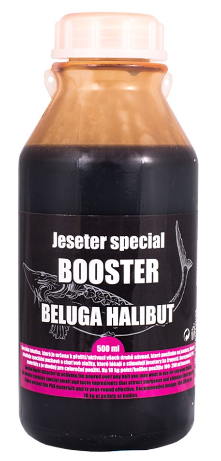 Booster obsahuje speciální pachové a chuťové složky, které lákají a stimulují jesetery ke žravosti. Na 10 kg pelet/boilies použijte 100- 200 ml boosteru.