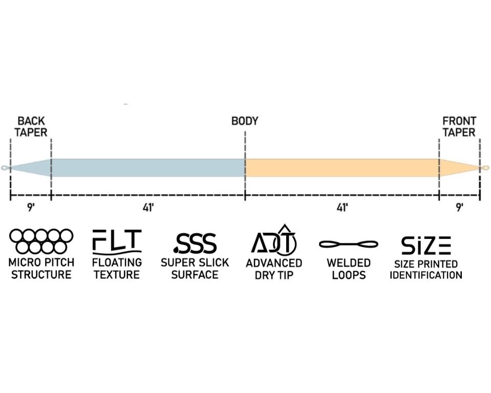 Na každém konci je smyčka pro připevnění. Polovina šňůry je světle modrá a druhá polovina je broskvová. Rybář se může rozhodnout, která barva je za daných podmínek na hladině vody viditelnější.