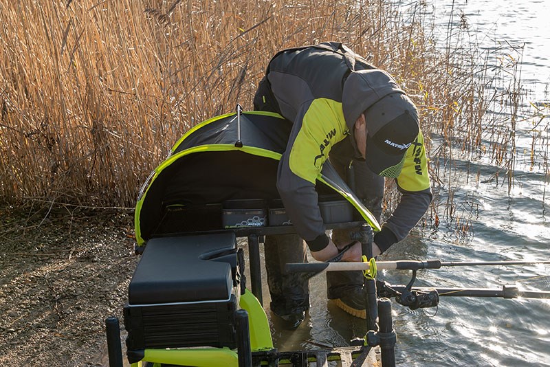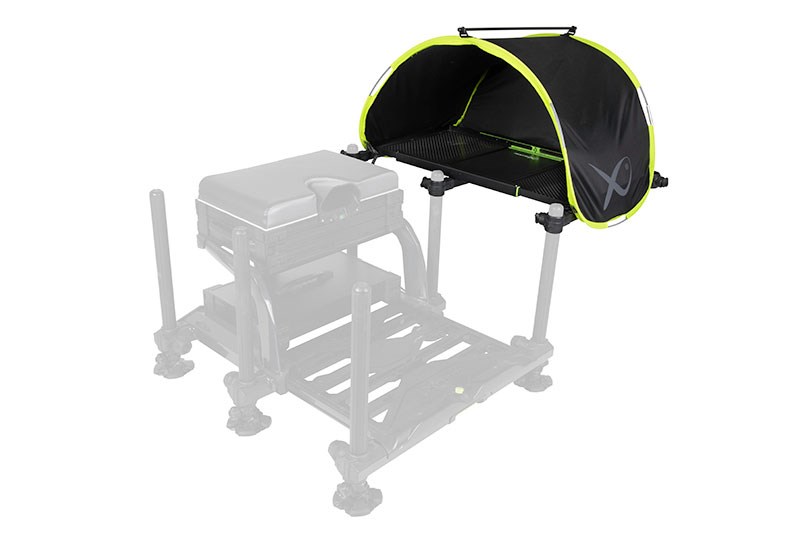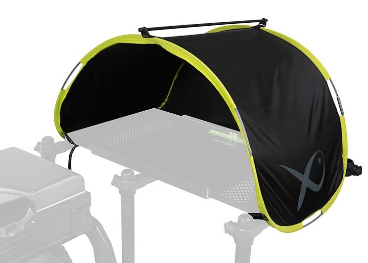 Vyskakovací rám umožňuje rychlé a snadné rozložení. Navržen pro použití s oběma velikostmi našich výsuvných bočních plat. Popruhy se suchým zipem umožňují pevné uchycení na místě. Napínací tyč zajišťuje větší stabilitu za větrného počasí. Tkanina s voděodolnou podšívkou zabraňuje prosakování vody k nástraze. Lehká a kompaktní konstrukce. Skládá se do úzké transportní tašky.