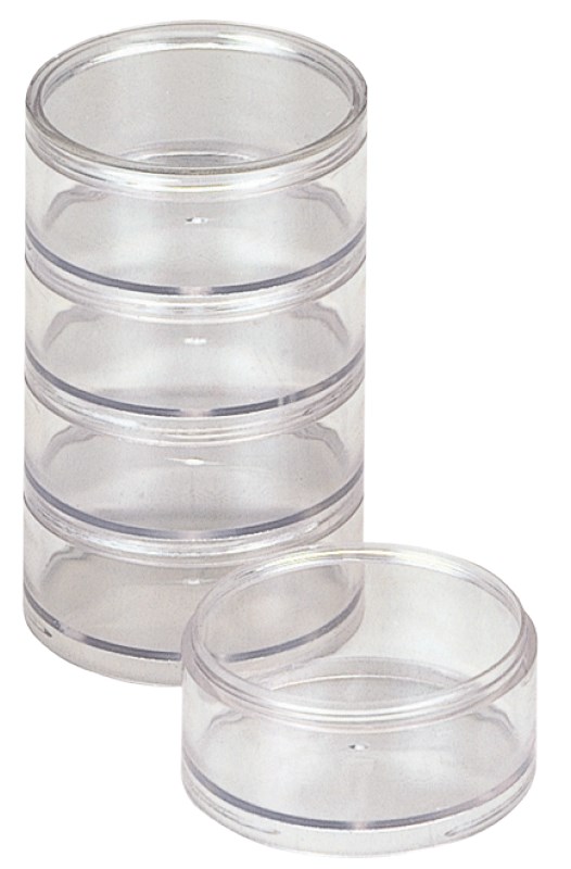 Sestavitelné šroubovací krabičky od firmy Meiho. Material: Styrol. Rozměry průměr 70x133 mm.