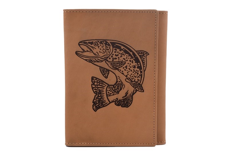 Kvalitní kožená dokladovka většího rozměru se dvěma malými a dvěma většími přihrádkami. Malé přihrádky můžete využít na běžné doklady, jako například občanský nebo řidičský průkaz a větší přihrádky jsou zase přizpůsobeny rybářským průkazům a povolením. V nabídce si můžete vybrat hned mezi několika barevnými variacemi, například tmavě hnědou, světle hnědou nebo černou. A dokonce, hledáte-li nějaký osobnější dárek, můžete si vybrat z několika laserových rybářských vzorů.