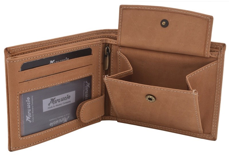 Šikovná kožená peněženka z pro muže je oblíbenou univerzální volbou pro muže. Peněženka je bez vnějšího zapínání, ale vnitřní část na doklady se zapínat dá. Pro některé zákazníky to znamená větší pocit bezpečí nebo možná přehlednějšího uspořádání. Vnitřek nabízí dostatečný prostor pro všechny potřebné i nepotřebné karty, doklady a fotky. Peníze si můžete bezpečně uložit do dvou složek na bankovky nebo do velkého mincovníku.