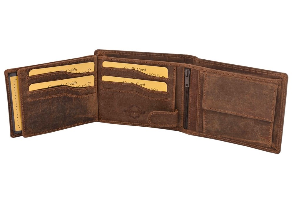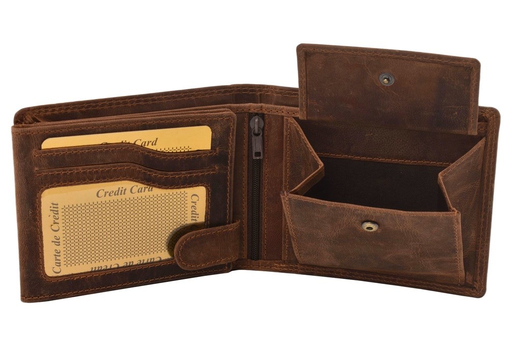 Kožená pánská peněženka z kvalitní kůže nabídne přesně ten komfort, který majitel dobré peněženky potřebuje. Tento model obsahuje několik chytrých přihrádek na karty a osobní doklady. Rovněž nezapomíná ani na fotky, které si můžete umístit do průhledných přihrádek. Na uschování mincí poslouží velká kapsa na mince nebo i zipová přihrádka uprostřed peněženky, která však může být využita univerzálně. Klasickým prvkem jsou dvě přepážky na bankovky.