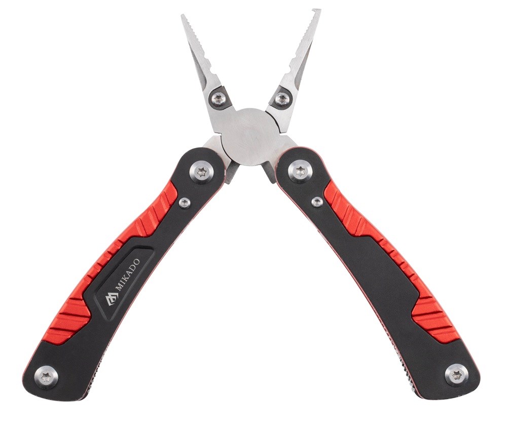 MIKADO Multitool 12v1 je spolehlivý a praktický pomocník, který kombinuje dvanáct různých nástrojů v jednom kompaktním těle. Obsahuje mimo jiné nůžky, šroubovák, otvírák na konzervy, pilník a další funkce užitečné při rybolovu i mimo něj. Díky své velikosti se snadno vejde do kapsy, rybářské tašky nebo boxu a je vždy připraven pomoci, když je potřeba něco rychle vyřešit v terénu.