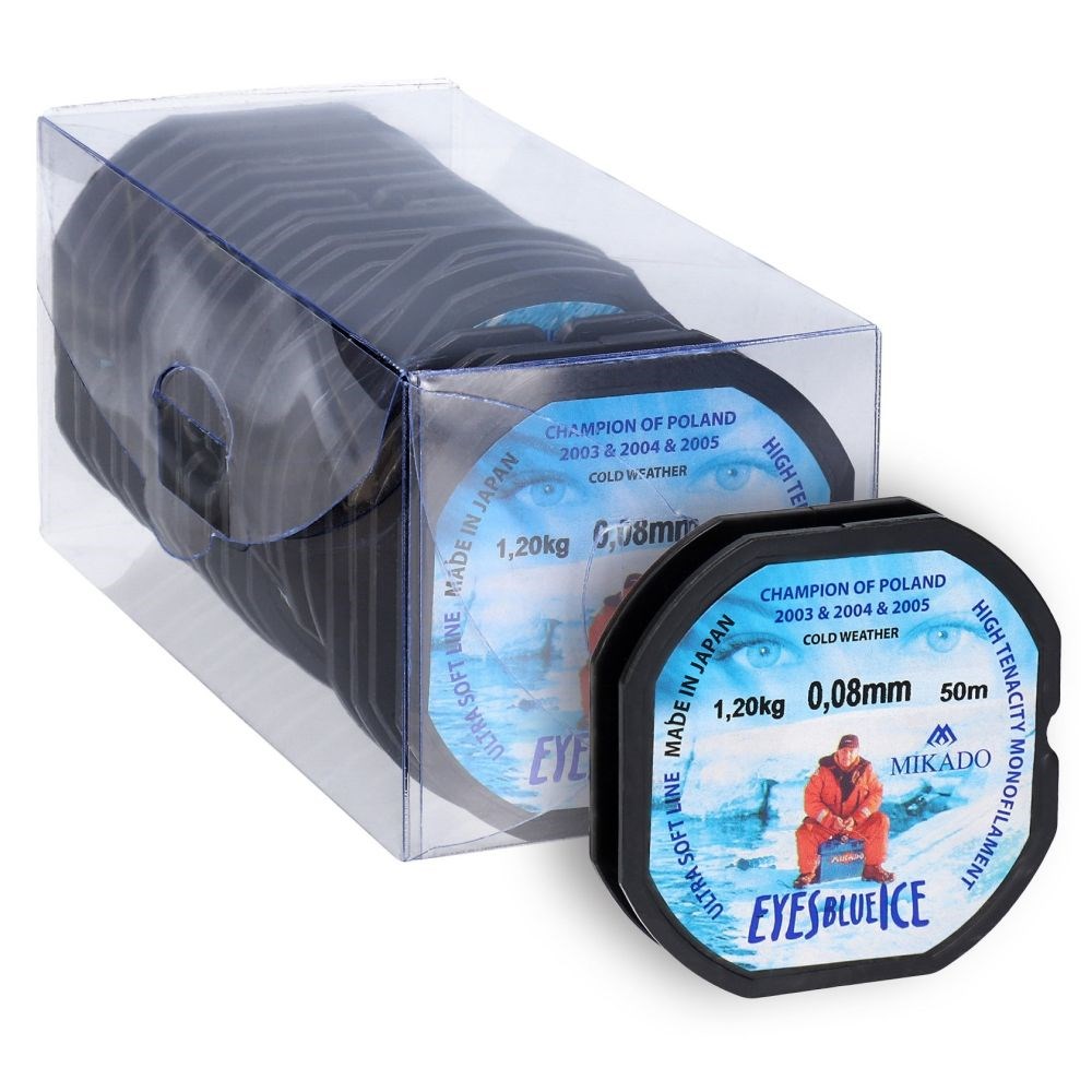 MIKADO Eyes Blue Ice je speciální vlasec navržený pro zimní rybolov na dírkách. Díky použití moderního polymeru si zachovává své vlastnosti i v extrémně nízkých teplotách. Povrchová úprava výrazně omezuje namrzání vody, snižuje tření a chrání materiál před UV zářením, což zajišťuje spolehlivost během celodenního rybolovu.
