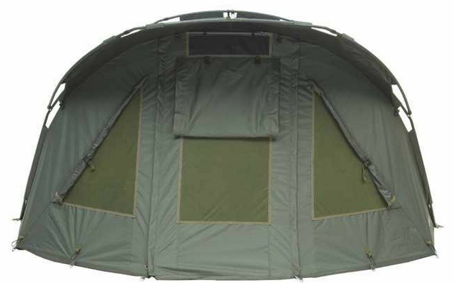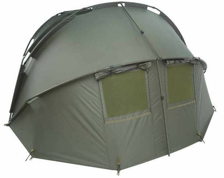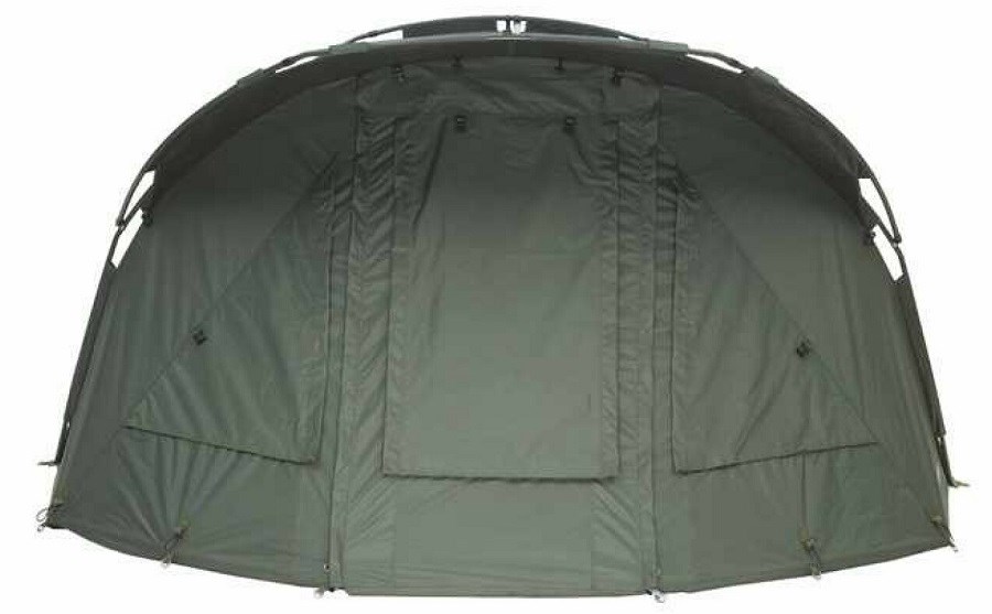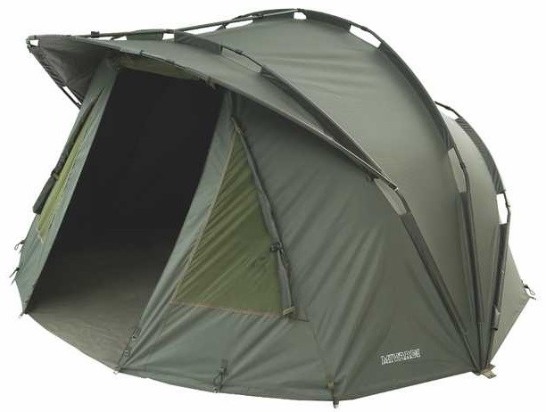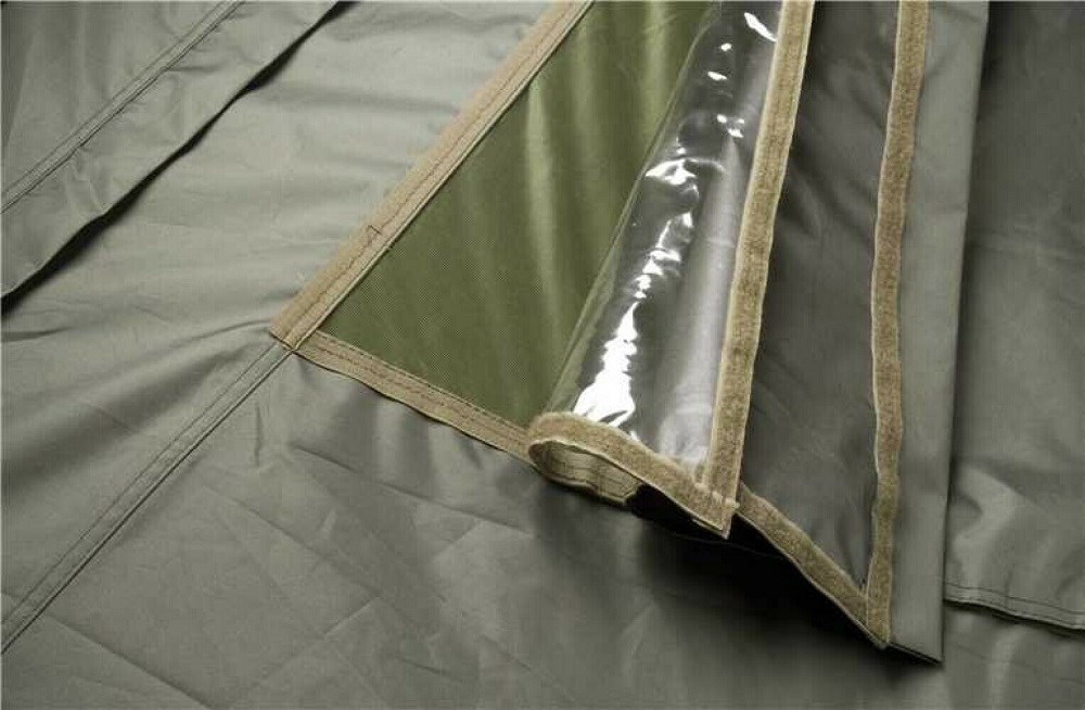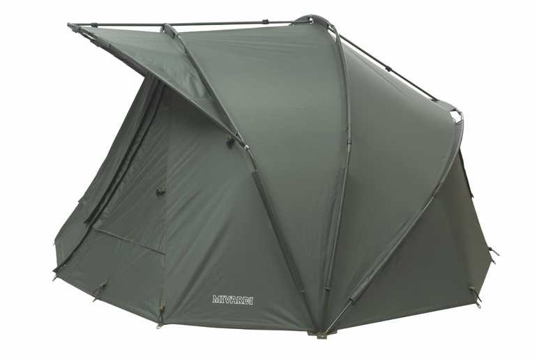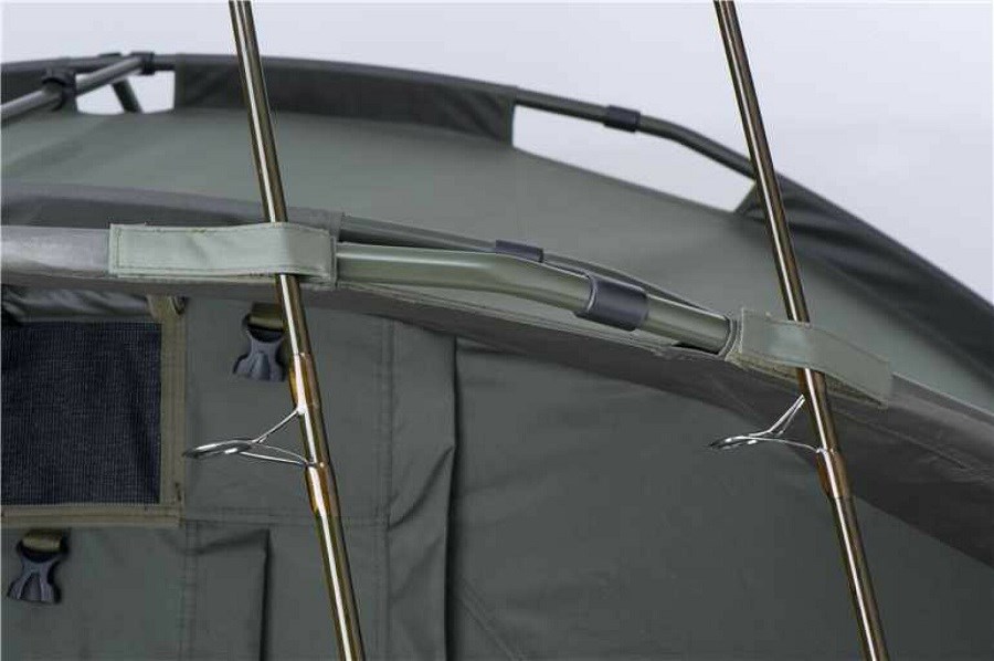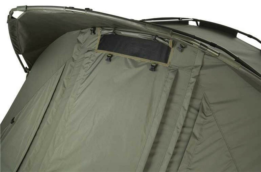 Prodloužená stříška chrání celou plochu dveří. Ve vnitřním prostoru s výškou 160 cm najdete 10 úchytů pro světla a další drobné příslušenství. Šířka bivaku je variabilně nastavitelná ve třech polohách. Podlahu je možno uchytit suchými zipy po obvodu bivaku a dvěma kovovými klipsnami po stranách. Dveře jsou vybaveny otvíratelnou ventilační klapkou pro zajištění cirkulace kyslíku a odvedení vlhkosti z bivaku. Zesílené zipy jsou doplněny velkými táhly Easy Grip, do kterých lze vložit chemická světla. Vpředu jsou umístěny 4 úchyty na pruty, opřené o bivak.
