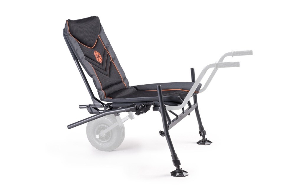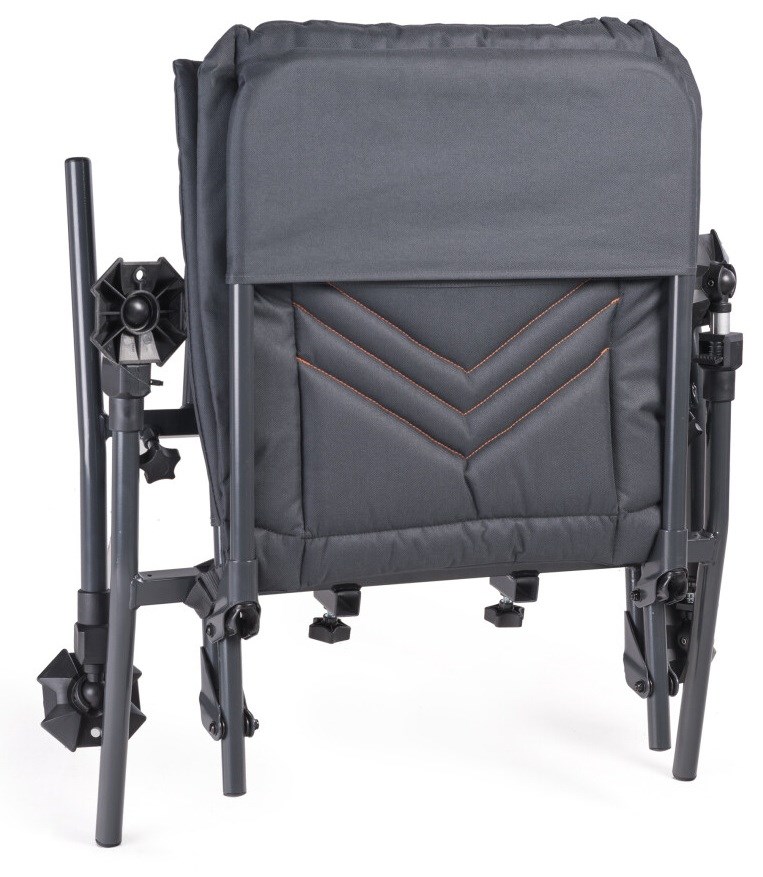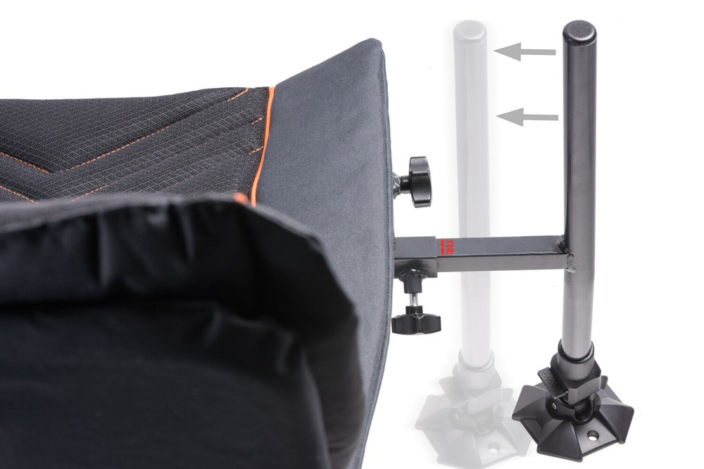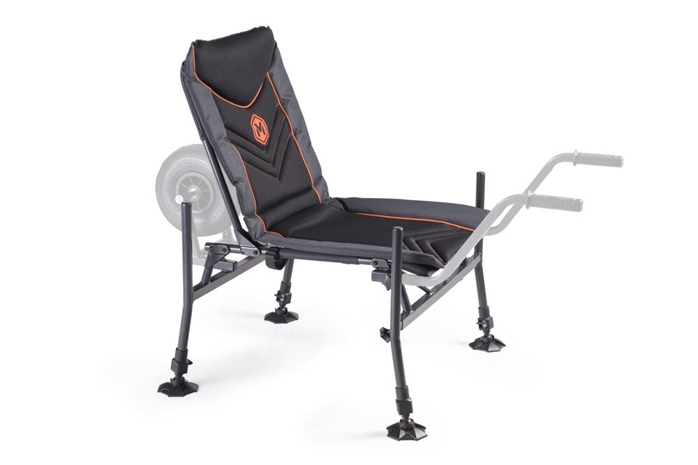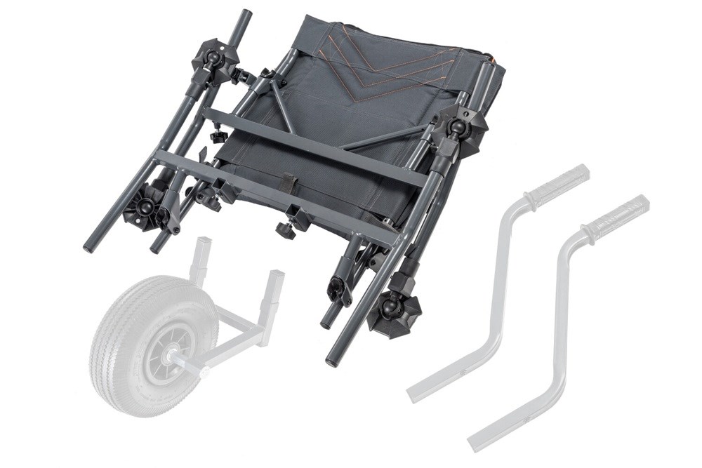 Je osazeno čtyřmi teleskopickými nohami pro snadné ustavení na nerovném břehu. Nohy mají průměr 25mm a proto umožňují nasazení nejrůznějšího příslušenství, které je pro tento průměr snadno dostupné. Přední nohy umožňují variabilní vysunutí do stran a tím i dosažení ještě vyšší stability. Anatomické tvarování matrace je podpořeno i tvarováním rámu sedáku. Optimálně zvolené polstrování zajišťuje vysoký komfort i při dlouhém sezení. Toto křeslo může být doplněno o unikátní přepravní systém (dostupný samostatně). Ten z křesla během několika vteřin udělá stabilní transportní vozík, který zajistí pohodlnou přepravu celé vaší výbavy.
