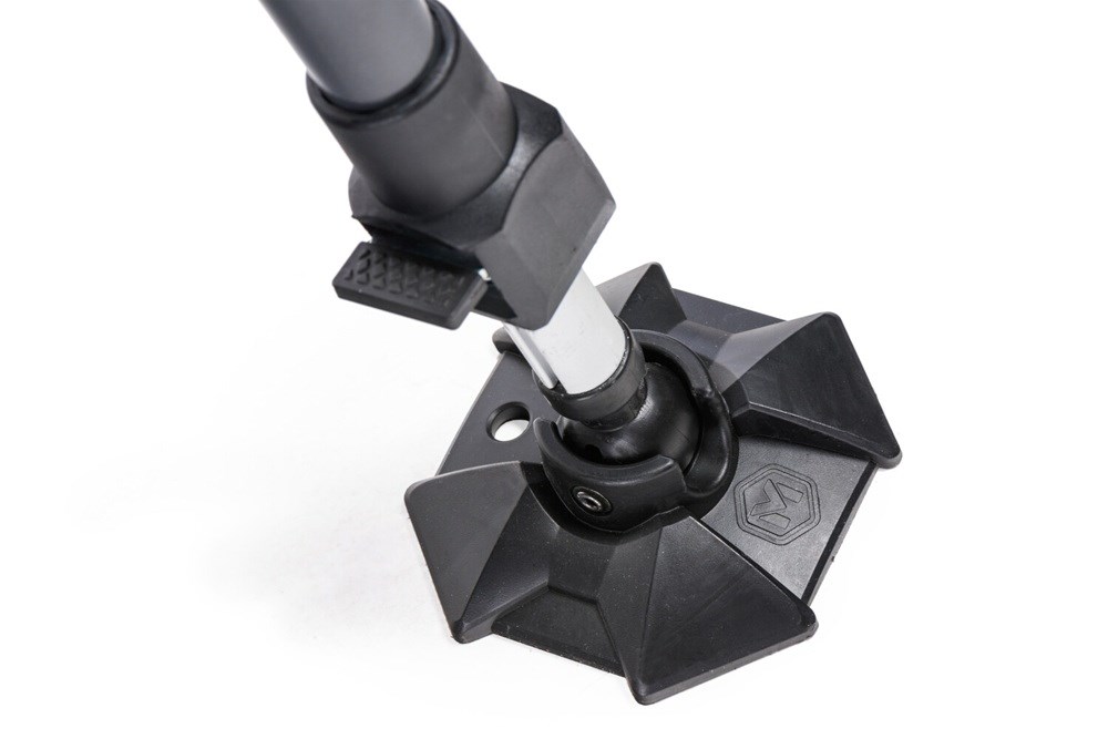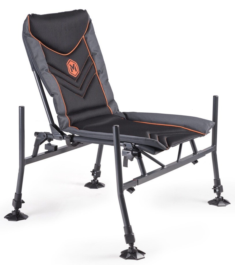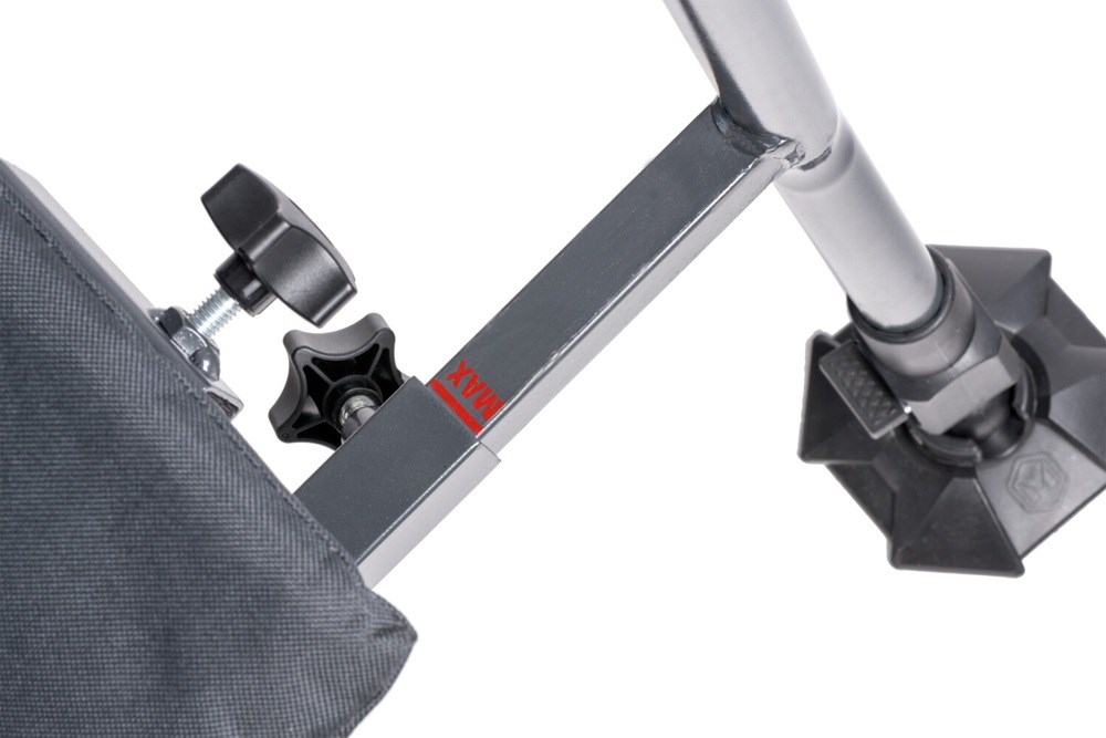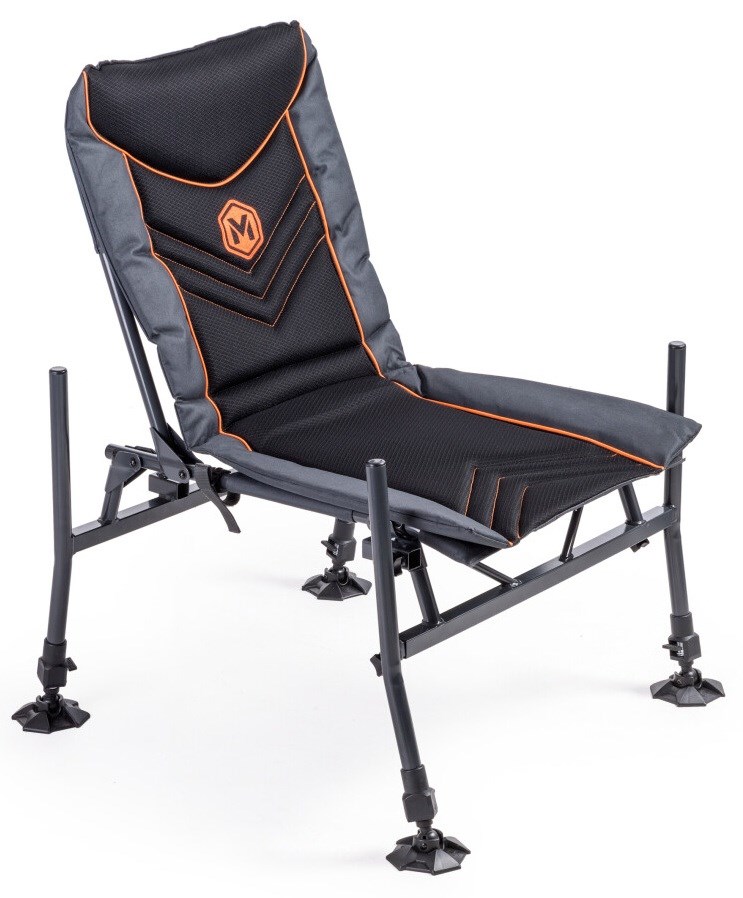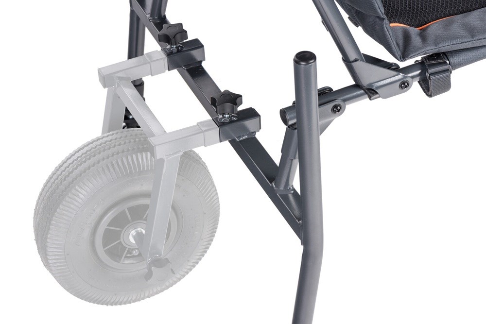 Je osazeno čtyřmi teleskopickými nohami pro snadné ustavení na nerovném břehu. Nohy mají průměr 25mm a proto umožňují nasazení nejrůznějšího příslušenství, které je pro tento průměr snadno dostupné. Přední nohy umožňují variabilní vysunutí do stran a tím i dosažení ještě vyšší stability. Anatomické tvarování matrace je podpořeno i tvarováním rámu sedáku. Optimálně zvolené polstrování zajišťuje vysoký komfort i při dlouhém sezení. Toto křeslo může být doplněno o unikátní přepravní systém (dostupný samostatně). Ten z křesla během několika vteřin udělá stabilní transportní vozík, který zajistí pohodlnou přepravu celé vaší výbavy.