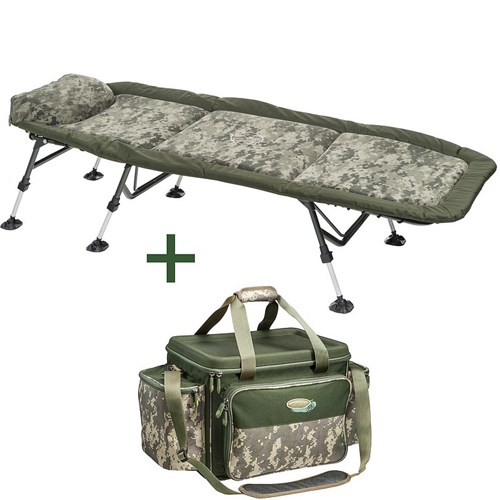 Extrémně lehké, velké a 100% ploché lehátko ve velice atraktivním designu s digitálním maskováním, ve variantě se šesti nohami. Nadstandardně silná a velmi komfortní matrace s fleecovou vrchní vrstvou nabízí nejúčinnější systém regulace tuhosti pomocí elastického šněrování na spodní straně. Další výhodou jsou nohy s rozměrnými výkyvnými patkami a možností velkého vysunutí.