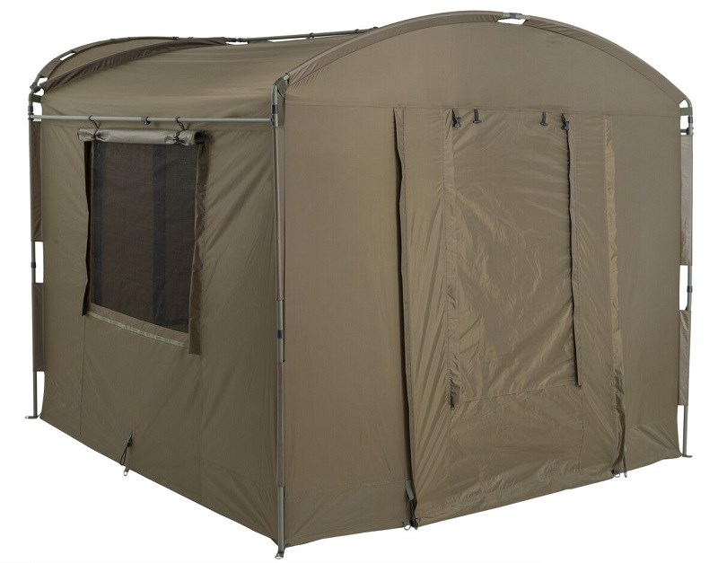 Jeho konstrukce umožňuje velmi rychlé sestavení a složení. Masivní konstrukce z 19 mm trubek, zatloukací kolíky a přídavné kotvící šňůry zajišťují dokonalou stabilitu v každém počasí. Konstrukce přístřešku umožňuje mnoho variant nastavení a otevření dveřních panelů, bočních i předních oken. Pevný kšilt chrání prostor předních dveří před deštěm. Podlaha je uchycena k plášti přístřešku pomocí dvou dlouhých a robustních zipů. Přístřešek ideální jako společenská místnost, kuchyň, jídelna, velký sklad nebo velmi prostorný bivak. Je uzpůsoben k pohodlnému rozložení dvou velkých lehátek a díky své výšce umožňuje neomezený pohyb dospělých osob v celém vnitřním prostoru. Jeho nezanedbatelnou výhodou je mimořádně nízká přepravní hmotnost a kompaktní transportní rozměry. Přehoz: Plnohodnotný přehoz umožňuje výrazně zvýšit užitnou hodnotu a komfort přístřešku Base Station. Velká okna na předním i zadním panelu zajišťují dokonalé větrání. Dvojitý plášť zlepšuje vnitřní klima ve vysokých i nízkých teplotách a zároveň minimalizuje kondenzaci vody na vnitřním plášti. Použitím přehozu vznikne prostorná předsíň, která zvětšuje využitelný vnitřní prostor. Zároveň se zvýší stabilita i odolnost proti větru. V silném větru je vhodné přístřešek s přehozem zajistit kotvícími lanky. Speciální konstrukce přední stěny a zdvojené kotvící body umožňují snadné napnutí přehozu i v nerovném terénu. Přehoz složený do přepravního obalu překvapuje malými transportními rozměry a především velmi nízkou hmotností.