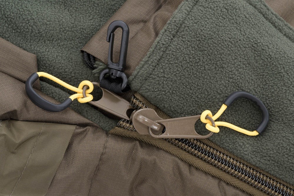 Samozřejmostí jsou robustní samorozjížděcí zipy pro snadné a rychlé rozepnutí spacáku. Ty jsou zevnitř i zvenku chráněny chlopněmi, které spolehlivě udrží teplo a brání vniknutí chladného vzduchu zvenku. Pohodlný THERMO STOP límec rovněž výrazně napomáhá k udržení tepla a zároveň zvyšuje komfort.