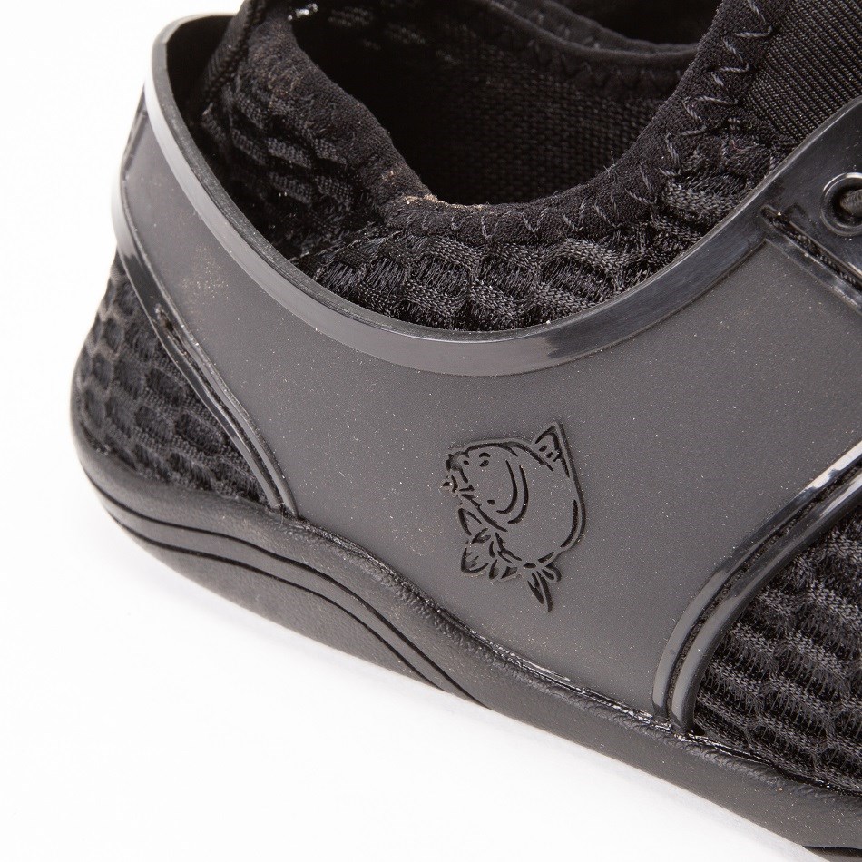 Nash Water Shoe ochrání Vaše nohy při brodění ve vodě. 3D síťovaná tkanina umožňuje odtok vody a prodyšnost - takže budete vždy v maximálním pohodlí. Prodyšná podrážka taktéž zabraňuje hromadění tepla, aby se zlepšilo pohodlí a hygiena. Elastický strečový střih se stahovací šňůrkou. Jsou v decentním černém Nash designu.