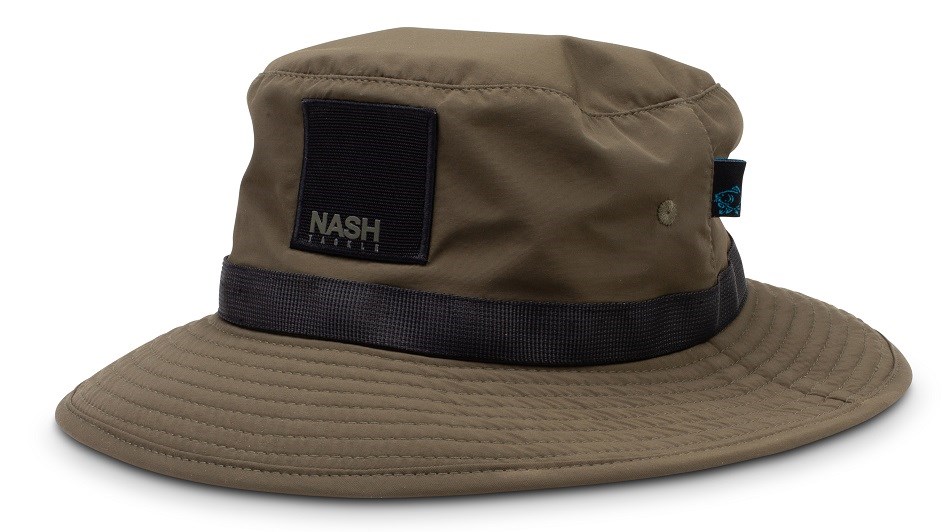 Klobouk Bush se dá stáhnout pomocí šňůrky. Uvnitř klobouku je prodyšná podšívka po celém obvodu. Má větrací otvory a černý lem obvodu. Na přední straně se nachází černé gumové logo Nash.