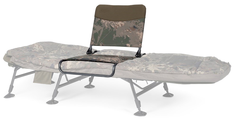 Tohle křeslo umožňuje pohodlné sezení na lehátku, kdy vám nabízí podporu vašich zad. Bedchair Seat Camo je kompatibilní s veškerými verzemi našich lehátek, díky možnosti nastavení její šířky. Díky nastavitelné zadní části se zámky je možné použít křesílko na standardní i wide verze Nash lehátek.