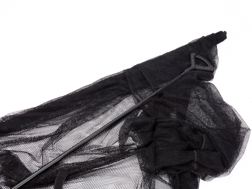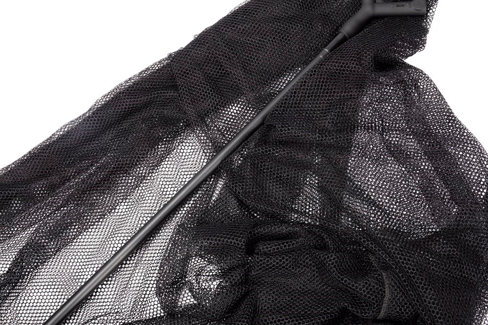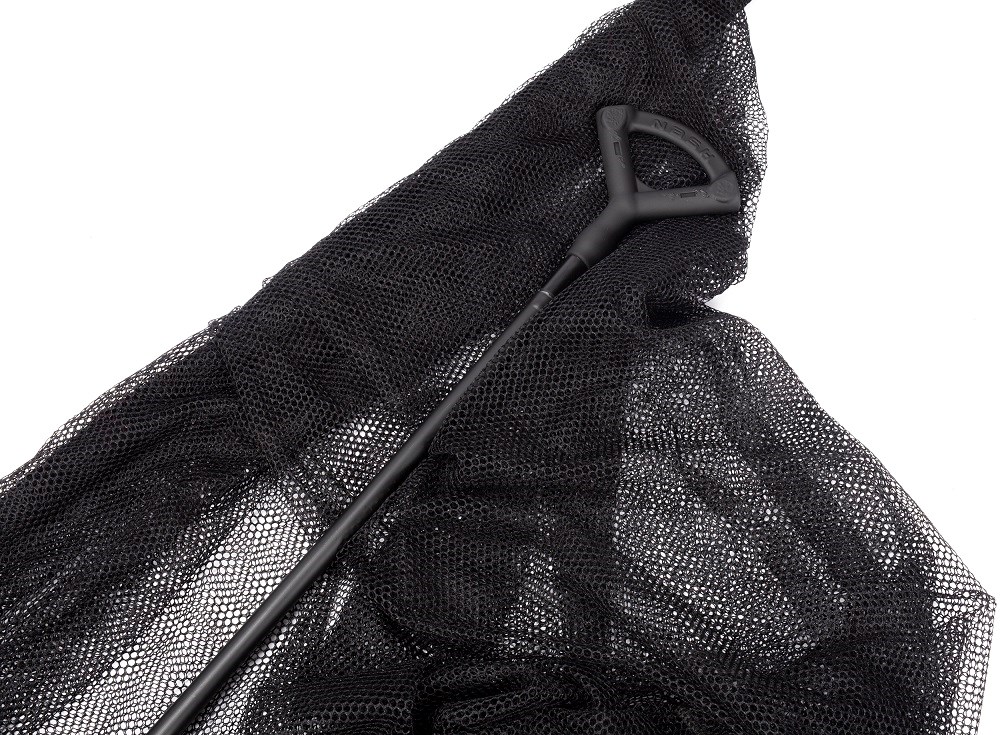 Dvojitá rukojeť ze smršťovačky, laserově vypálená koncovka a odnímatelné lisované dvě části tyče Nash. Černá síť s délkou ramen 42 palců.