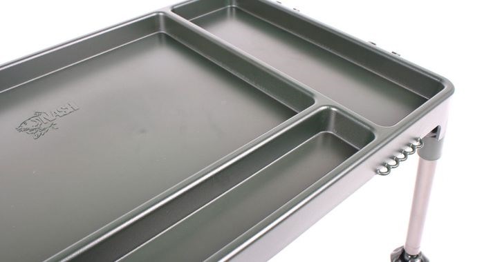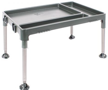Jeden z absolutně nej stolků do bivaku, jaké jdou v současné době koupit. Super stabilní a pevný stolek s hladkým povrchem a vyššími stěnami jednotlivých částí, které zabraňují skutálení bižuterie na zem. Nohy stolku jsou nastavitelné a mají rozšířené patky, které poskytují vyšší stabilitu v jakémkoli terénu. Na straně jsou malé očka pro zavěšení návazců a taktéž je možné dokoupit boční nástavce, které lehko se stolkem spojí pomocí kolejniček. Rozměry: 49cm x 22,5cm Výška:38-32cm.
