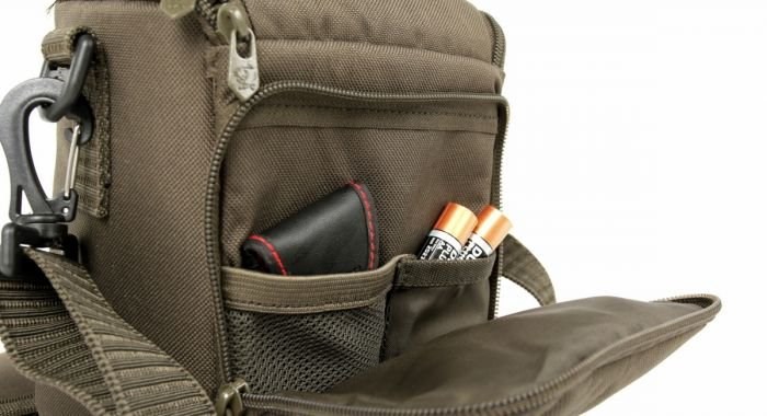 Vnější kapsa poslouží na paměťové karty, filtry nebo baterie. Suchý zip ve spodní části tašky si nastavíte tak, aby byl váš fotoaparát chráněn proti nárazu.