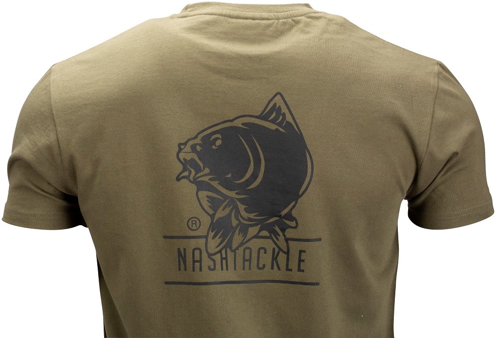 Zelené tričko má typické logo ryby Nash. Na základě poptávky jsou nyní k dispozici i pro menší fanoušky.