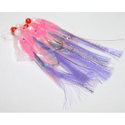 5 kusů montáže Purple Hokkai Rigs Určeno pro mořský rybolov. Vázáno na čirý vlasec 0,60 mm / 40 lb, háčky velikost 2.