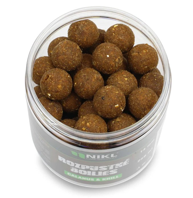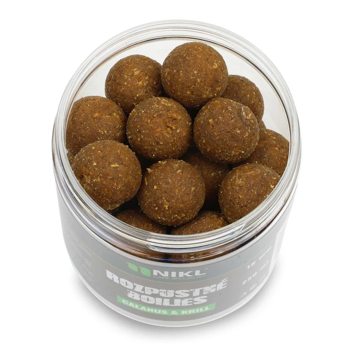 Nikl Rozpustné boilies Calanus & Krill je kulaté, rychle pracující boilies, které vychází z konceptu známých Attract Hookers. Vyznačuje se intenzivním korýším aroma a specifickou chutí drobných korýšů, doplněnou o krillovou složku, která vytváří mimořádně silný potravní signál. Tato příchuť je účinná na aktivní ryby i na opatrné jedince, protože působí výrazně, ale zároveň přirozeně, takže kapry neodrazuje ani na tlakových vodách. Rozpustné boilies Calanus & Krill je navrženo tak, aby pomohlo docílit záběru v co nejkratším čase. Obsahuje vysokou dávku tekutých i práškových složek, které se díky speciálně upravenému mixu začínají uvolňovat okamžitě po dopadu do vody. Tím vzniká silná pachová stopa, která se rychle šíří okolím, navádí ryby k montáži a dokáže nastartovat záběr i ve chvílích, kdy je aktivita kaprů nízká. Calanus & Krill je perfektní volbou pro situace, kdy potřebujete rychlou, efektivní a okamžitě fungující nástrahu. Díky rozpustnosti pracuje spolehlivě i během krátkých vycházek nebo při závodním lovu, kde rozhoduje každá minuta. Korýší profil dokáže ryby vyprovokovat i na prochytaných revírech, protože vytváří čitelné potravní impulsy a pomáhá udržet zájem ryb v okolí lovného místa.